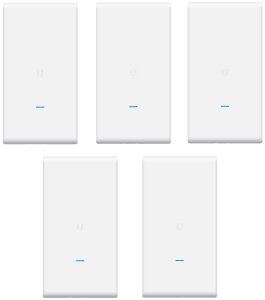 Ubiquiti Networks UAP-AC-M-Pro-5, 5-Pack of UniFi AP, AC Mesh for use Outdoor (PoE adapters Not Included). Simultaneous 802.11a b g n ac Dual Band 3x3 Mimo technology. 450Mbps in 2.4Ghz and 1300 Mbps in 5Ghz. Range 183m. Weather resistant enclosure. Can be mounted on a wall or pole (All mounting accessoies included. UniFi AC Mesh AP is compatible with 802.3af PoE. You can power it with any 802.3af compatible switch, UniFi PoE Switch, 48V, 0.5A Gigabit PoE adapter. Use the included 3 internal 8dBi antenas Max TX power 22 dBm, Dimension 343 x 181 x 60.2 mm. Use the UniFi Controller software to manage your whole UniFi Network.