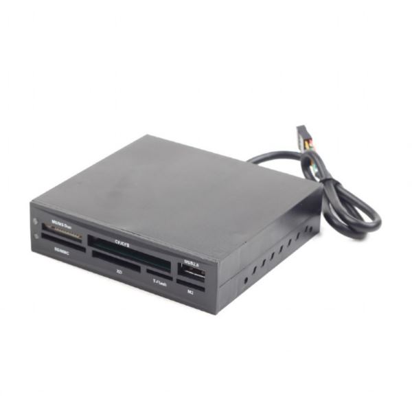 Gembird Internal USB card reader writer, black - Fits in 3.5" drive bay of desktop PC SD MMC Socket: Secure Digital Card, Mini Secure Digital Card, Multimedia Card, Reduced-Size Multimedia Card, SDHC, SDXC T-Flash Socket: Micro-SD, Micro-SDHC, Micro-SDXC XD Socket: XD-Picture Card, Mini XD MS Socket: Memory Stick, Magic Gate Memory Stick Card, Magic Gate Memory Stick Duo Card, Magic Gate Memory Stick Pro Card, High-speed Memory Stick Card M2 Socket for M2 card CF Socket: Compact Flash Type I Card, Compact Flash Type II Card, High Performance Compact Flash Card, IBM Microdrive