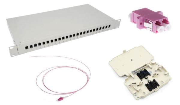 NFO Patch Panel 1U 19" Closed - SET Multimode 24x LC OM4 Duplex Adapter, 48x LC OM4 Pigtails, 2x Splice trays