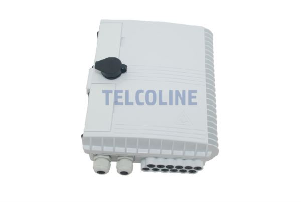 NFO Splice Closure, 2 inputs, 12 outputs, Wall mount - 12 SC simplex LC duplex and fiber optic splices (12 24) Dimensions: 260x210x75 mm Material: PC ABS Color: white Maximum diameter for a bus cable: 18 mm Diameter of holes in sleeves for subscriber cables: 2 mm Diameter of holes without sleeves: 12 mm Number of places for adapters: 12 (SC simplex LC duplex) Operating temperature: -35 60 C Integrated hinged splice tray Tray capacity: 12 24 splices Protection rating: IP65 Weight: 1 kg Equipment: Splice covers: 12, Subscriber cable sealing sleeves: 12, Cable ties, Protective tube for fiber distribution, Accessories for wall mounting, Key for closing the door