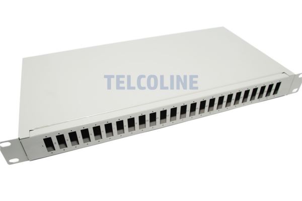 NFO Patch Panel 1U 19" - 24x SC Duplex, Closed, 1 tray - Weight: 2 kg Number of trays: 1 Tray capacity: 12 24 welds Maximum number of welds: 48 Maximum number of adapters: 24 (SC Duplex) Material: Cold-rolled steel - powder painted in light gray Maximum number of trays: 3 Dimensions: - Mounting height: 1U (44.45 mm), Depth: 250 mm, Method assembly (length): 19 '' profile, Diameter of openings on back plate: 2x20 mm, 2x16 mm Supplied with: Optical tray Cable gland: 2 x PG.13.5 Splice covers Mounting screws for adapters Plastic cable ties Spare screws: small and large Spare nuts: small and large