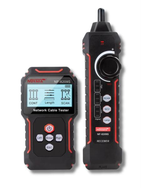 NOYAFA NF-8209S - wire tracker - NOYAFA NF-8209S Network Cable Tester and Tracer with Anti-jamming Porbe, Crimp, PoE Port - Locate The Target Cable Quickly, Ethernet Continuity Test, Measure Cable Length Accurately, Port Blink Test, Identify the network port by the blinking port light on the Hub or Switch. Available to 10M 100M 1000M Hub switch, PoE Testing, Work Safely - Non-Contact Voltage (NCV) tester detect AC voltage (70V-1000V) without disrupting the electrical system, Rechargeable Battery- The network tester can be recharged using a USB-C cable, and the lithium battery provides long-lasting power