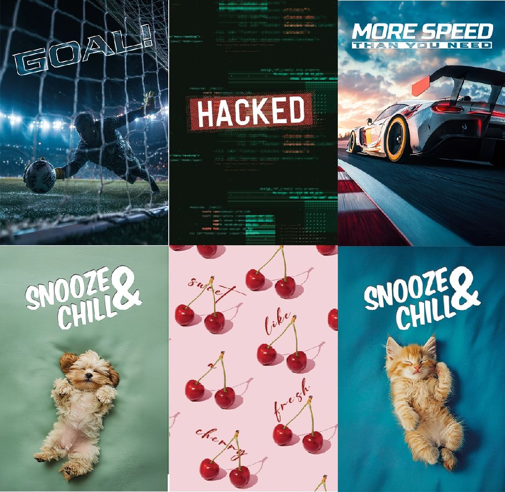 Bilježnica meki uvez čista Motivi: Cherry, Chill cute cat, Chill cute dog, Car, Hacked, Goal Papir: 75gsm Broj listova: 50+2 Omot: 230 gsm GC1 Tisak omota: CMYK (4/0) + mat plastika + UV lak Tisak KB: 1/1 Tisak predlist: 1/0