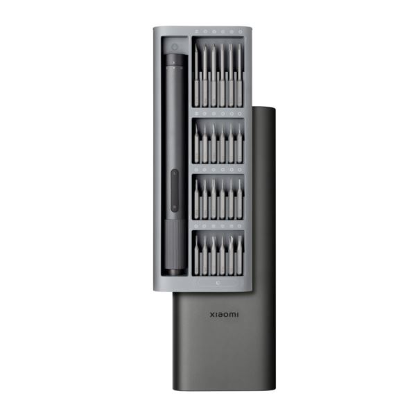 Xiaomi Electric Precision Screwdriver - Two-speed torque precise control Magnetic storage container 24x S2 steel precision screwdriving bits 400 precision screws on one full charge Universal Type-C charging port Package contents: 1x Storage container, 1x Xiaomi Electric Precision Screwdriver, 24x Screwdriving bit, 1x Type-C charging cable, 1x User manual