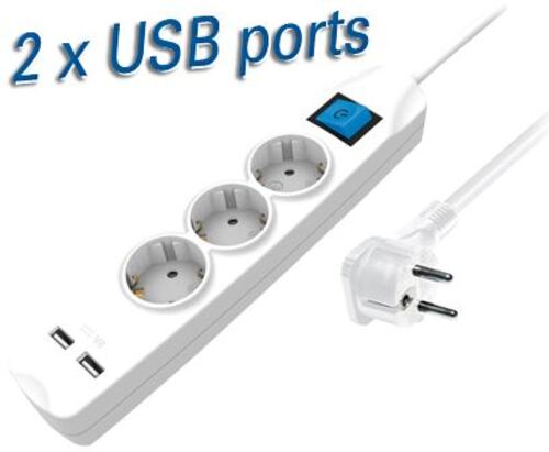 Transmedia 3-way power strip with two USB charging ports 1 5m white