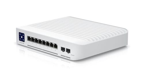 Ubiquiti USW-Enterprise-8-PoE - UniFi L3 Managed Switch Enterprise Edition with 8 x 2.5GbE PoE ports and 2 x 10G SFP ports.1.3" LCM color touchscreen. 120W total PoE budget. Wall mount kit included. 200 x 248 x 44 mm.
