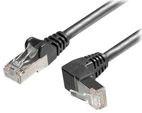 Transmedia TI45-2L - Cat6A S FTP (PIMF) Patch Cable, RJ45 plug, straight to RJ45 plug, angled up, 5m, Perfect patch cable for tight server cabinets and Mini PCs Twisted pair, AWG 26, Cu 1:1 connected, category 6A, Black