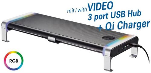 Transmedia Hyper Gaming Monitor Rack, HT43 - for screens, laptops, etc. up to 20 kg, with Qi Charger, RGB Lighting built-in 3 port USB Hub dimensions: 206 x 544 x 90 mm, 2 built-in drawers
