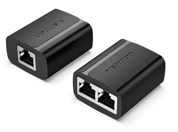 Vention RJ45 Splitter Adapter, Black - Connect two devices to the Internet at the same time Bandwidth: 100Mbps Need to use in pairs to achieve the simultaneous Internet access of two devices. A single use can be a network cable extender, and can only access the Internet with a single port Distance up to 100m