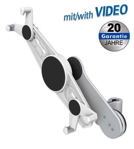 Transmedia Tablet Bracket for the Car Headrest, HT 4 - for most 7" - 10,4" Tablets tilt: 40 swivel: 360 clamp range: 10 - 15 mm it is also possible to mount 2 holders side by side incl. mounting guide,