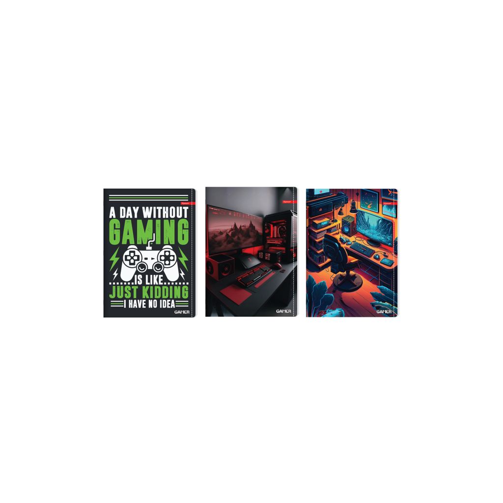 Gamer kolekcija bilježnica Broj listova: 52/zaobljeni rubovi Papir: 70 gr/m2 bijeli papir Format: A4 (210x297) Tisak: 4/0 + UV Korice: 240gr/m2 CG-1 + mat plastifikacija Broj motiva: 6 Pakiranje: 10/40/2400 (folija/karton/paleta)