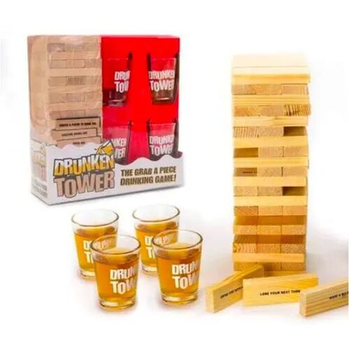 Savršena igra za zagrijavanje atmosfere na svakom partyju! Drunken Tower kombinira klasičnu igru ravnoteže s izazovima za piće – svaki blok skriva drugačiji zadatak. Idealan izbor za zabavu kod kuće ili na putu. - 4 čašice po pakiranju - 60 blokova po pakiranju - Jedinstvene upute za svaki blok - Blokovi od pravog drva Dimenzije: 19x20x7,5 cm Materijal: staklo, drvo ZA OSOBE STARIJE OD 18 GODINA. IGRU KORISTITE ODGOVORNO.