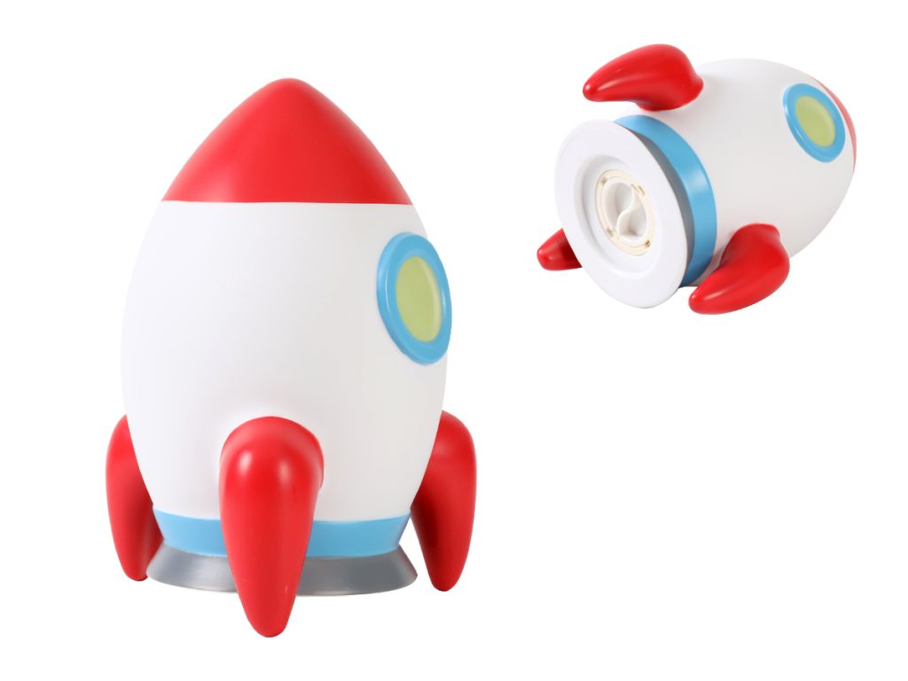 Kasica u obliku svemirske rakete. Dimenzije:19x16x16cm. Materijal: plastika.