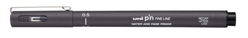 UNI PIN markeri rapidografi za tehničko crtanje opremljeni su Super Ink pigmentnom vodootpornom tintom koja donosi intenzivnu dubinu linije ispisa te garantira dugovječnost ispisa i otpornost na sve utjecaje. Ispis je potpuno vodootporan te se neće zamrljati ako po njemu prolijete vodu. Boja ispisa ne blijedi tokom vremena niti ako je kontinuirano izložena suncu. Precizan i čvrst vrh okruglog oblika čini liniju ispisa jasnom i punom. Gustoća materijala od 1/1000 mm onemogućuje cijepanje, savijanje i ispadanje vrha (pera). Ovim je prednostima rang PIN markera zaslužio snažnu vjerodostojnost u profesionalnom i tehničkom crtanju i naklonost korisnika raznih struka kao što su arhitekti, dizajneri, umjetnici. Vrh : od poliacetena s metalnom cjevčicom u sredini Kućište : od polipropilena Debljina ispisa: 0,5 mm. Cijena je za komad, komercijalno pakiranje je 12 komada. Otkrijte širok raspon debljina ispisa i boja PIN rapidografa, sada dostupnih i s vrhom u obliku kista!