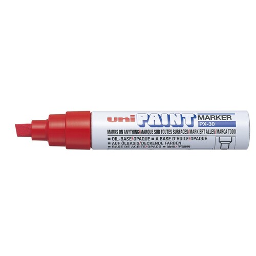 Markeri za trajan ispis na svim površinama. Tinta na bazi ulja i bijelog titana- pigmenta koji je glavni sastojak korekturnih tekućina omogućava ispis visokog sjaja poput akrila, oštrih linija i živopisnih boja neovisno o površini na koju se boja nanosi (papir, staklo, metal, plastika, tkanina…). Nova boja potpuno prekriva onu ispod nje. Upotrebljavaju se u industriji i proizvodnji (brodogradilišta, strojna, automobilska industrija…), za hobi, oslikavanje i popravljanje odjevnih i drugih predmeta. Izuzetno dugotrajan ispis odolijeva svim vremenskim utjecajima te su stoga pogodni i za korištenje na površinama koje se nalaze na otvorenom prostoru. Kao i Posca markeri, imaju “Felt tip” vrh ali i kuglicu u refilu. Prije upotrebe marker treba lagano udariti u tvrdu površinu a zatim protresti kako bi se kuglica oslobodila. Zatim vrh markera lagano i kratko pritisnuti o površinu kako bi se vrh uvukao u marker i aktivirao protok tinte. Tako se produžava vijek trajanja tinte koji počinje teći tek od prve upotrebe markera. Debljina ispisa: 4.0 – 8.5 mm Cijena je za komad, komercijalno pakiranje je 6 komada.
