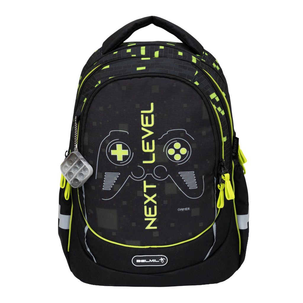 "Leisure plus" je napravljen od visokokvalitetnih, čvrstih i vodootpornih materijala. Ovaj model je odličan, ne samo za školu, već i za putovanja i druge dječje aktivnosti. Prostrani unutarnji pretinci - Ima pametno podijeljene odjeljke koji djeci pomažu organizirati školski pribor. Postoji jedan veliki unutarnji odjeljak, te poseban prednji odjeljak za pernicu. Sve veličine bilježnica i knjiga savršeno pristaju. Boca vode (do 0,7 L) i kišobran mogu se lako spakirati u bočne džepove. Izdržljivost - Ojačanja sa svih strana i snažno dno ruksaka također povećavaju stabilnost i izdržljivost. Donji dio ima i dodatne funkcije: osigurava da torba ostane u istom položaju, sprječava prljanje i održava sadržaj suhim čak i po kišnom vremenu. Pažljivo postavljene reflektirajuće trake sa svih strana. Prsni remen za optimalnu raspodjelu opterećenja - Torba je opremljena podesivim remenom za prsa za optimalnu raspodjelu tereta. Posebno je važno kada djeca voze bicikl ili trče jer sprječava da torba sklizne s dječjih ramena. Dodatne značajke - Navlaka ima ručku koja služi za siguran i udoban hvat u malim dječjim rukama. Ergonomski oblik i prozračna podstava - Ovo osigurava da je pritisak na dječja leđa minimalan. Naramenice su dobro podstavljene i podesive, tako da je zajamčeno udobno svakodnevno nošenje. Dodani prsni remen osigurava optimalnu raspodjelu opterećenja. Sigurnost - S Belmil školskom torbom sigurnost je zajamčena čak i kada padne mrak: pažljivo postavljene reflektirajuće trake sa svih strana, čvrsta i metalna kopča s reflektirajućom značajkom osiguravaju dobru vidljivost noću. Napomena: točna težina proizvoda može varirati +/- 5%. Jamstvo: 2 godine Preporučena dob: 7-11 god. Dimenzije: 40x30x20cm. Težina: 730-765 gr. Volumen: 19 L.