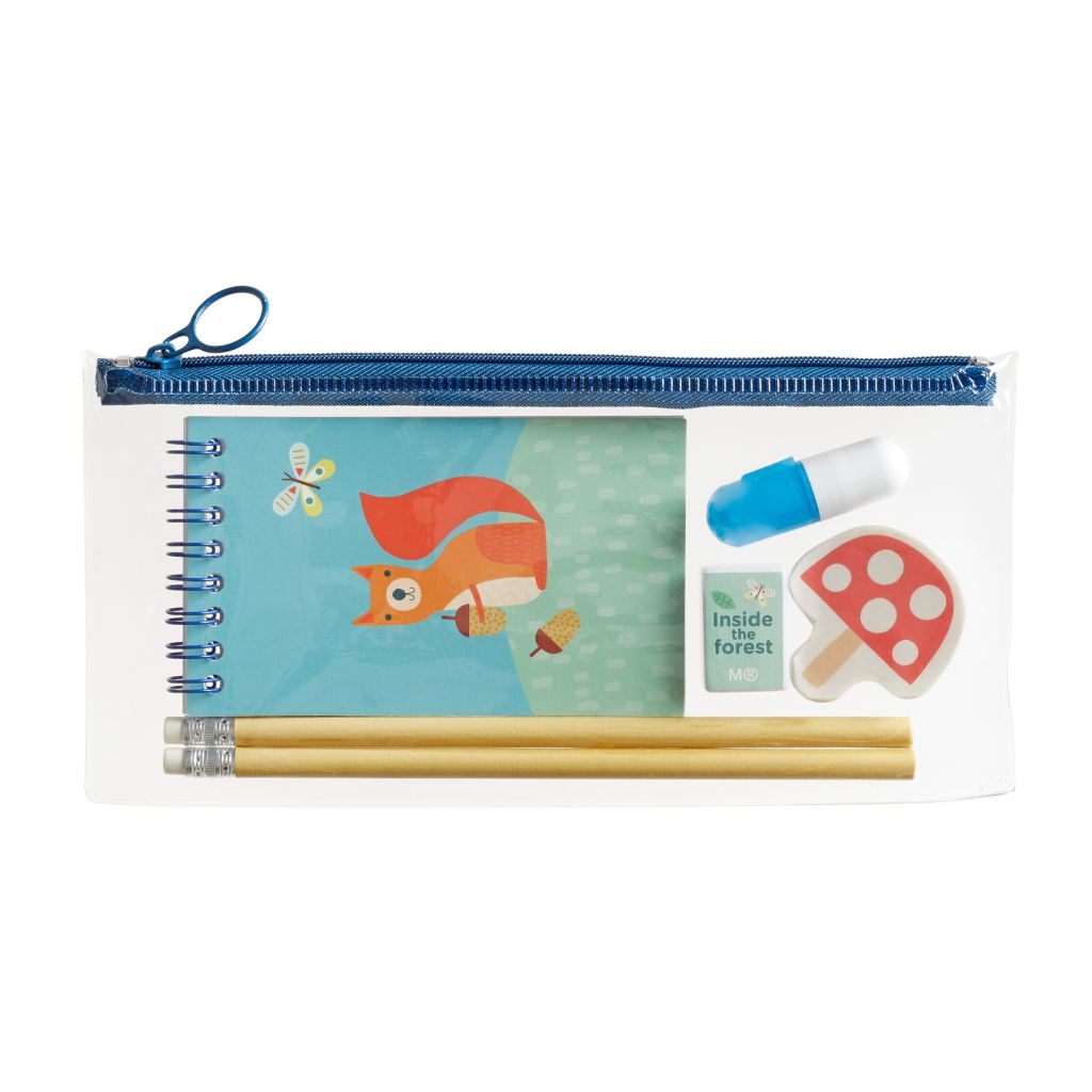 Pernica puna Miquelrius veličine 234x115x10mm, PVC Pernica sadrži: 2 grafitne olovke sa gumicom, šiljilo, marker, gumicu, notes sa spiralom gore na točkice.