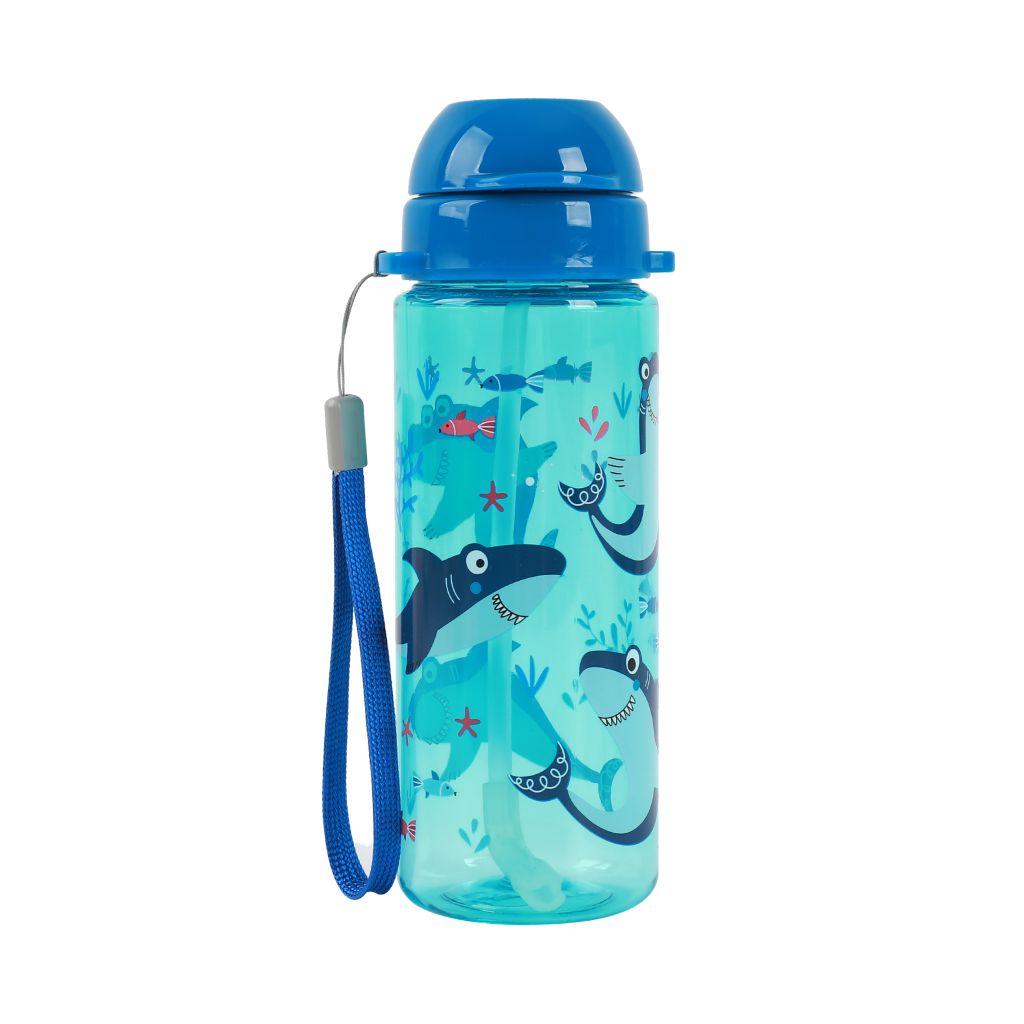 Ova prozirna boca za vodu ima simpatične morske pse po cijeloj površini i udoban čep s unutarnjom slamčicom kako bi svaki gutljaj bio lak i praktičan. Boce od tritana izdrže mnoge cikluse pranja u perilici posuđa bez gubitka boje ili sjaja. Bez opasnosti od loma, udaraca ili padova.