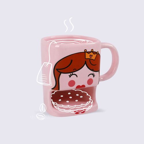Lijepo i korisno u jednom proizvodu! Keramička šalica od 250 ml sa džepom za dva ili tri keksa. Više ne morate ići okolo s cijelim pakiranjem keksa, već umetnite 2,3 keksa u ovu preslatku šalicu. Dimenzije: 8x10,5cm.