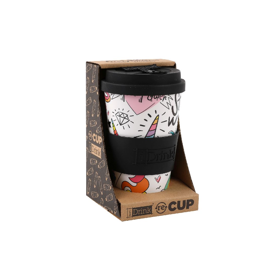 Putna šalica dizajnirana s pažnjom za detalje, višekratna i ekološki prihvatljiva. Naše šalice dizajnirane su za one koji su u pokretu. Silikonski čep dodatno sprječava slučajno prolijevanje iz otvora za piće, a naš široki srednji obruč pruža dodatnu udobnost vašim prstima. Naše čaše za višekratnu upotrebu izrađene su od reciklirane plastike! iDrink RPET šalica izrađena je od recikliranog materijala plastika (PET). Šalica uključuje silikonski poklopac, pogodna je za mikrovalnu pećnicu i perilicu posuđa (preporučuje se ručno pranje kako bi se zadržala kvaliteta i da grafički otisak ostane nepromijenjen tijekom vremena). Sastav: RPET 82%, PP 6%, silikati 12%.