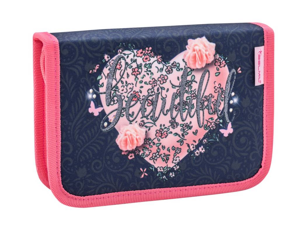 Pernica od kvalitetnog materijala. Unutrašnjost ima dva odjeljka, ispred kojih su dva prozirna džepa, jedan s rasporedom, dok u drugom možete držati papire ili kartice. Pernica sadržava: 12 kom drvenih bojica 12 kom flomastera 1 kom šiljilo 1 kom gumica 1 kom grafitna olovka 1 kom ravnalo 15 cm 1 kom kemijska olovka UNI 1 kom marker Posca Veličina: 14 x 20,5 x 3,5 cm Materijal: poliester