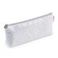 Zabavna glitter pernica bijela, koja dolazi u prigodnoj PVC kutiji. Zatvaranje zipom. Dimenzije pernice: 200 x 80 x 35 mm, sa PVC kutijom: 205 x 85 x 45 mm. Materijal: poliester sa šljokicama. Uključuje 12 komada, po 4 od svakog modela.