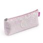 Zabavna glitter pernica roza, koja dolazi u prigodnoj PVC kutiji. Zatvaranje zipom. Dimenzije pernice: 200 x 80 x 35 mm, sa PVC kutijom: 205 x 85 x 45 mm. Materijal: poliester sa šljokicama. Uključuje 12 komada, po 4 od svakog modela.