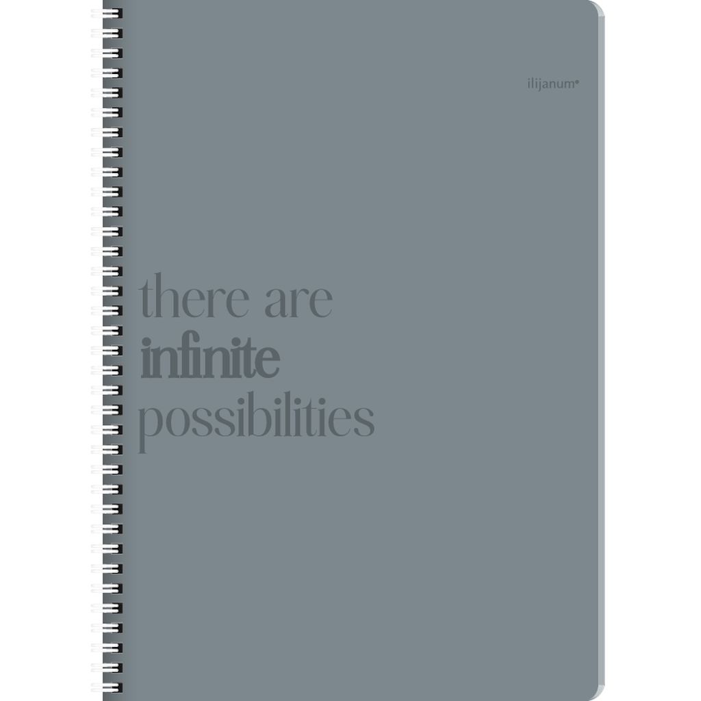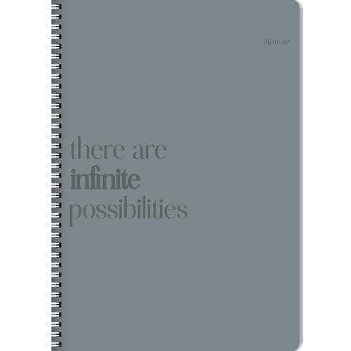 Infinity kolekcija bilježnica Broj listova: 120/zaobljeni rubovi Papir: 80 gr/m2 bijeli papir Format: A4 (210x297) Tisak: 2/0 + UV Korice: mat plastifikacija Uvez: spirala Pakiranje: 1/20/1080 (folija/karton/paleta)