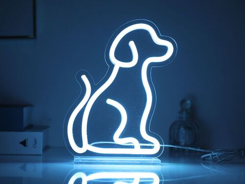 Dekorativna LED lampa koja prikazuje psa kada zasvijetli. Svijetli u ugodnoj plavoj boji stvarajući romantično i elegantno svijetlo u vašem domu. Savršen poklon za djecu i idealan dekor za dom, spavaću sobu, dječju sobu, uredski dekor itd. Napajanje 3AA baterije(nisu uključene)ili punjenje USB kabelom. Lampa je izrađena od plastike vrhunske kvalitete,otporne na lomljenje. Veličina: 16,2x5x23 cm