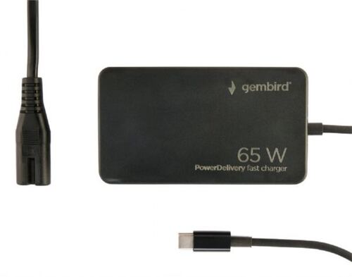 Gembird 65 W PowerDelivery GaN USB Type-C fast charger, black - Supports fast charging up to 65 W, GaN Suitable for charging all notebooks and smartphones that support Power Delivery charging (max. 65 W) Intelligent over-current, over-voltage, short circuit and overheat protection