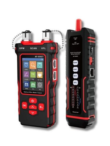 NOYAFA NF-859GT Ethernet Fiber Multi Cable Tester with a Unique Receiver Integrating a Variety of Functions of Alignment Test, VFL, PoE - Wire Detection Function Anti-interference mode ordinary mode(used with other models), Alignment Test Local alignment test and remote alignment test, Crimping Test To test whether the registered jacks RJ11and RJ45 are crimped properly, PoE Power supply wire core, mid-span and end-span, VFL 10mw