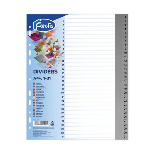 Pregrada plastična Forofis A4+ brojevi 1-31 siva PP 91291