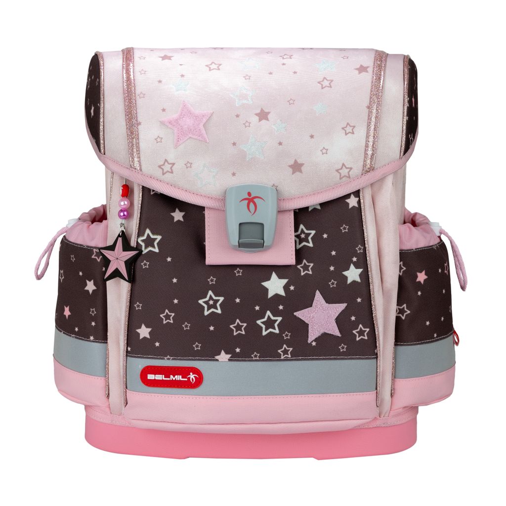 "Classy Plus" je klasični model raznih dizajna za djevojčice i dječake. Classy plus ima njemački magnetski sustav zaključavanja Fidlock. Zahvaljujući jakim magnetima, može se otvoriti jednostavnom polukružnom kretnjom, a zatvara se automatski. Savršena kombinacija funkcionalnosti, sigurnosti i razigranosti! Preporučena dob: 6-9 god. Veličina: 36x32x19cm. Težina: 1015 - 1065g. Kapacitet: 19 L. Lagana, ali izdržljiva i jaka torba izrađena od kvalitetnih, čvrstih i vodootpornih materijala. Izdržljivost: Ojačanja sa svih strana i snažno dno torbe povećava stabilnost i izdržljivost. Donji dio ima i dodatne funkcije: osigurava da torba ostane u istom položaju, sprječava prljanje i održava sadržaj suhim čak i po kišnom vremenu. Prsni remen: Prsni remen može se lako pričvrstiti na školsku torbu za optimalnu raspodjelu tereta. U slučaju da se remen ne koristi, može se ukloniti u bilo kojem trenutku. Posebno je važno kada djeca voze bicikl ili trče jer tada sprječava da torba sklizne s dječjih ramena. Prostrani unutarnji pretinci: Imaju pametno podijeljene odjeljke koji djeci pomažu organizirati školski pribor. Unutarnji dizajn ima tri velika odjeljka. Sve veličine bilježnica i knjiga savršeno odgovaraju odjeljcima. Boca vode (do 0,7 L) i kišobran mogu se lako spremiti u bočne džepove. Gornji poklopac ima držač rasporeda. Prednji džep namijenjen je za pohranu pernice ili kutije za ručak. Također postoji i odjeljak za mobilni telefon i manje predmete, poput karata i ključeva. Ova školska torba također ima Fidlock magnetski sustav zaključavanja. Ergonomija: Ergonomski oblik i prozračna podstava na leđima za dodatnu udobnost. Dobro podstavljene naramenice koje su podesive u dvije točke: na vrhu i na dnu za savršeno pristajanje. Za optimalnu raspodjelu težine torbi dodan je podesivi i uklonjivi remen za prsa. Svi modeli Belmil školskih torbi posjeduju AGR certifikat. Aktion Gesunder Rücken dodjeljuje se samo proizvodima čiji je dizajn ugodan za leđa i potvrđen je od strane neovisnog povjerenstva za testiranje, sastavljenog od stručnjaka iz različitih medicinskih disciplina. Sigurnost: S Belmil školskom torbom sigurnost je zajamčena čak i kada padne mrak: pažljivo postavljene reflektirajuće trake sa svih strana, čvrsta i metalna kopča s reflektirajućom značajkom osiguravaju dobru vidljivost noću. Napomena: točna težina proizvoda može varirati +/- 5% Jamstvo: 2 godine