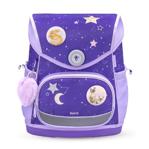 "Compact" je klasični model raznih dizajna za djevojčice i dječake. Lagana, ali izdržljiva i jaka torba izrađena od kvalitetnih, čvrstih i vodootpornih materijala. Izdržljivost: Ojačanja sa svih strana i snažno dno torbe povećava stabilnost i izdržljivost. Donji dio osigurava da torba ostane u istom položaju, sprječava prljanje i održava sadržaj suhim čak i po kišnom vremenu. Prsni remen: Prsni remen može se lako pričvrstiti na školsku torbu za optimalnu raspodjelu tereta. U slučaju da se remen ne koristi, može se ukloniti. Posebno je važno kada djeca voze bicikl ili trče jer tada sprječava da torba sklizne s dječjih ramena. Prostrani unutarnji pretinci: Unutarnji dizajn ima tri velika odjeljka. Sve veličine bilježnica i knjiga savršeno odgovaraju odjeljcima. Gornji poklopac ima držač rasporeda. Prednji džep namijenjen je za pohranu pernice ili kutije za ručak. Također postoji i odjeljak za mobilni telefon i manje predmete, poput karata i ključeva. Džep za bocu 0,7L. Ergonomija: Ergonomski oblik i prozračna podstava na leđima za dodatnu udobnost. Dobro podstavljene naramenice koje su podesive u dvije točke: na vrhu i na dnu za savršeno pristajanje. Za optimalnu raspodjelu težine torbi dodan je podesivi i uklonjivi remen za prsa. Svi modeli Belmil školskih torbi posjeduju AGR certifikat. Aktion Gesunder Rücken dodjeljuje se samo proizvodima čiji je dizajn ugodan za leđa i potvrđen je od strane neovisnog povjerenstva za testiranje, sastavljenog od stručnjaka iz različitih medicinskih disciplina. Sigurnost: S Belmil školskom torbom sigurnost je zajamčena čak i kada padne mrak: pažljivo postavljene reflektirajuće trake sa svih strana, čvrsta i metalna kopča s reflektirajućom značajkom osiguravaju dobru vidljivost noću. Izrađene od visokokvalitetnog, vodootpornog tekstila, Belmil torbe osiguravaju trajnost i otpornost na vremenske uvjete, uz lako održavanje. Patentni zatvarači su ergonomski oblikovani i opremljeni metalnim kukicama koje su izdržljive, ali i jednostavne za rukovanje. Fidlock magnetni sustav zaključavanja kod modela Compact omogućuje jednostavno otvaranje s polukružnim pokretom i automatsko zatvaranje zahvaljujući snažnim magnetima. Proizvedene u Europi, Belmil torbe odražavaju obiteljsku tradiciju, s naglaskom na kvalitetu i održivost. Uz trogodišnje jamstvo, Belmil Premium torbe pružaju sigurnost, funkcionalnost i stil – savršenog partnera za svaki školski dan. Odaberite Belmil Premium – školsku torbu koja zadovoljava sve potrebe vašeg djeteta!