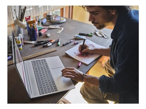The HP OmniBook 5 LaptopAI delivers performance with its Core Ultra 7 processor, featuring 12 cores and Intel Turbo Boost Technology for efficient multitasking and responsiveness. Its 32 GB of LPDDR5 SDRAM with a data transfer rate of 7467 MT/s provides the memory needed for demanding applications, while a 1 TB PCIe 4.0 SSD offers storage capacity with quick access times. The 16-inch OLED display with a native resolution of 1920 x 1200 ensures image quality and vibrant colors with a 95% DCI-P3 color gamut, enhancing the visual experience for both work and entertainment. Additionally, connectivity options such as USB-C with Power Delivery and HDMI make this laptop versatile for various setups in the office or at home.