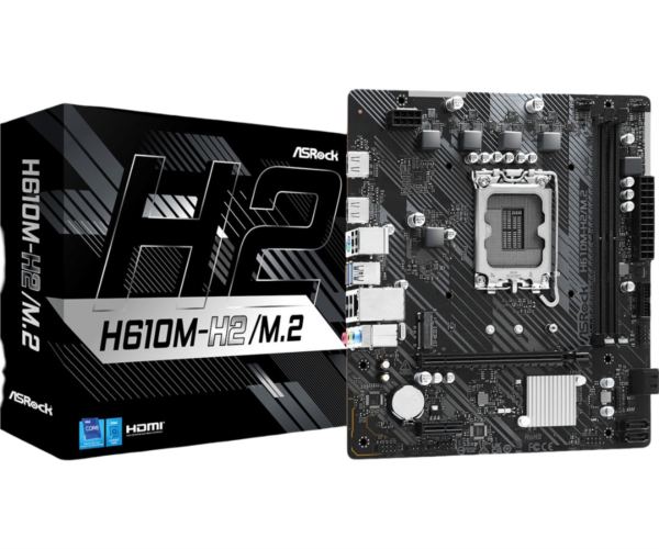 Asrock Intel LGA1700 H610M-H2 M.2 - Supports 14th, 13th 12th Gen Intel Core Processors (LGA1700) 3 1 1 Phase Power Design 2 x DDR4 DIMMs Supports Dual Channel, up to 3200 1 PCIe 4.0 x16, 1 PCIe 3.0 x1 Graphics Output Options: 2 HDMI Realtek ALC897 7.1 CH HD Audio Codec 4 SATA3, 1 Ultra M.2 (PCIe Gen3x4) 4 USB 3.2 Gen1 (2 Rear, 2 Front), 6 USB 2.0 (4 Rear, 2 Front) Realtek Gigabit LAN Supports ASRock Auto Driver Installer