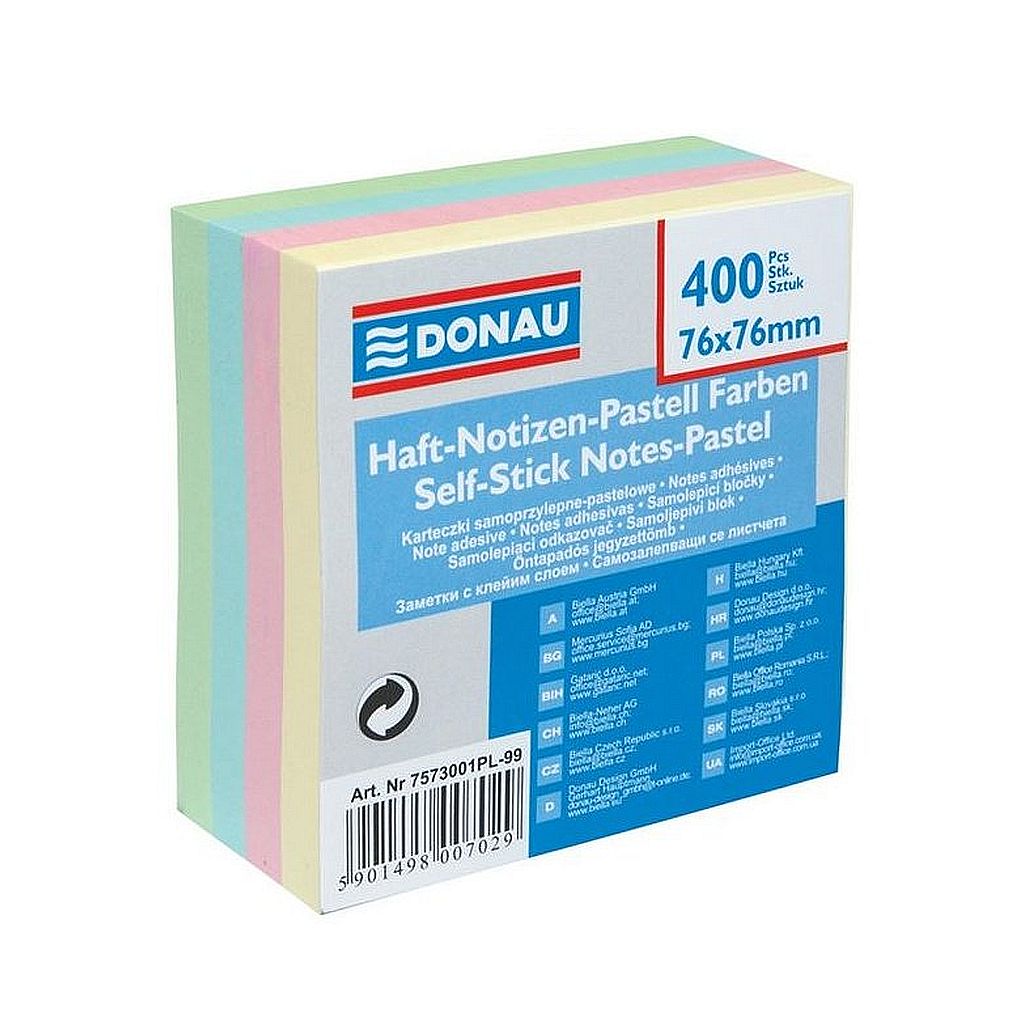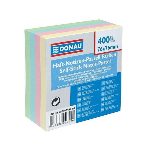 Blok samoljepljivi Dimenzije:76x76mm 400 listova Boja:Mješ. pastel Brand:Donau