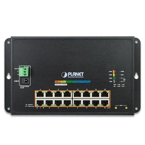 Planet Industrial 16-Port GbE 802.3at PoE 2-Port 100 1000X SFP Wall-mounted Managed Switch