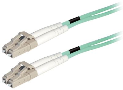 Transmedia OM 41-0,5 - Fibre optic Patch cable OM4 LC-LC Multimode (50 125 ) Duplex With dust covers Jacket: PU LSZH Colour: aqua Each cable packed in a polybag With test protocol Up to 10 Gbit Ethernet 0,5 m