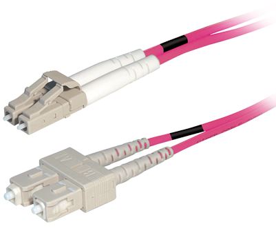Transmedia OM 44-2 - Fibre optic OM4 Patch cable LC-SC Multimode (50 125 ) Duplex With dust covers Jacket: PU LSZH Each cable packed in a polybag with test protocol Up to 10 Gbit Ethernet 2 m