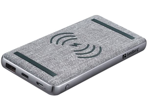 Sandberg Powerbank 10000 PD20W Wireless - Capacity: 10000 mAh 37 Wh Battery type: Li-polymer Connectors: 1 x Micro USB female, 1 x USB-C female, 1 x USB A female Micro USB input: 5V 2A, 9V 2A, 12V 1.5A USB-C Input: 5V 2.4A, 9V 2A, 12V 1.5A USB-C Output: 5V 3A, 9V 2A, 12V 1.67A (PD 20W) USB A Output: 5V 2.4A, 9V 2A, 12V 1.5A Wireless output: 5W 7.5W 10W 15W Frequency: 100 Hz - 180 kHz Charging distance: ?10 mm Charging efficiency: 65% Wireless standard: Qi