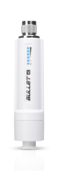 Ubiquiti Networks B-DB-AC, Bullet, Dual-Band, AC, Dual-Band airMAX ac Processor - Dedicated Wi-Fi for UMobile Easy Setup - Poweed by Gigabit PoE - Antenna Connector: N-Type Connector (male) Supported by UMobile and airOS 8.1. Max. Power Consumption: 8W Output Power: 22dBm Power Supply: AC to 24VDC, 0.5A PoE Gigabit PoE Adapter (not included) Power Method: 24V Passive PoE (Pairs 4, 5 ; 7, 8 Return)