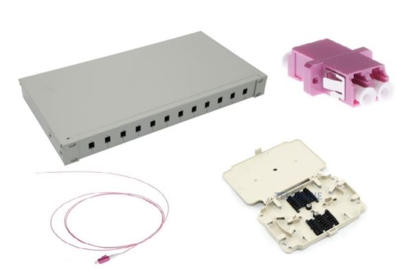 NFO Patch Panel 1U 19" Closed - Multimode 12x LC OM4 Duplex Adapter Pigtail kazeta SET