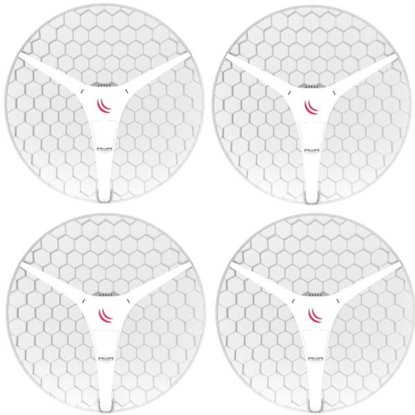 MikroTik RBLHG-5HPnD-XL4pack LHG XL HP5 4pack, is a compact and light wireless device with an integrated 27 dBi grid antenna at a revolutionary price. It is perfect for point to point links or for use as a CPE at longer distances. Compared to the standard version, this has a 3dB higher transmit power and antenna gain is 2,5dBi higher than standard version. Antena beamwidth 6,4 . VSWR 1.5:1. Dish dimension O 550 x 245 mm; The device comes disassembled for compact shipping, but is very easy to assemble and includes a simple to use grounding attachment point. The package also contains a small adapter for tilting the antenna five degrees from the original position.