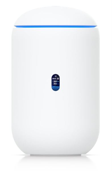 Ubiquiti UDR7, UniFi Dream Router 7 - Tri-Band WiFi 7 AP with support for 802.11a b g n ac ac ax be 5.7 Gbps (6GHz) 4.3 Gbps (5GHz) 688 Mbps (2.4GHz) (1) 10G SFP WAN (1) 2.5G WAN (3) 2.5G LAN 1 port with PoE-Out (802.3af) PoE budget 15.4W MicroSD card slot for UniFi Protect recordings (64GB SD card included) 0.96" LCD color display for real-time network traffic monitoring Pre-installed UniFi applications: Network, Protect, Access, Talk, Connect