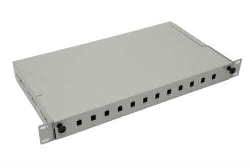 NFO Patch Panel 1U 19" - 12x SC Simplex LC Duplex, Pull-out, 1 cassette - Weight: 2 kg - Number of trays : 1 - Trays capacity: 12 24 welds - Maximum number of adapters: 12 (SC Simplex, LC Duplex) - Material: Cold-rolled steel - powder coated light gray - Maximum number of trays: 3 - Dimensions: - Mounting height: 1U (44.45 mm) - Depth: 250 mm - Mounting method (length): 19 '' profile - Diameter of holes on back plate: 20 mm Supplied with: - Tray, - Cable glands: 2 x PG.13.5 - Splice covers : 12 - Mounting screws for adapters: 24 - Plastic cable ties: 4 - Elements (bolts) blocking the extension: 2