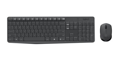 Logitech MK235, Keyboard Mouse, Wireless, HR - WiFi range (in meters): 10 m Keyboard Spill-resistant design - Tested under limited conditions (maximum of 60 ml liquid spillage). Do not immerse the keyboard in liquid. Tilt legs 10-Key Number pad Special Keys: 15 function keys Up to 5 million keystrokes 2 AAA batteries Battery life: 36 months - Keyboard battery life calculation based on an estimated two million keystrokes year in an office environment. User experience may vary. Mouse Sensor technology: Smooth Optical tracking Number of buttons: 3 (Left Right-click, Middle click) Scrolling: line-by-line Scroll Wheel: Yes, 2D, optical Connect Power: On Off power button 1 AA batteries Battery life: 12 months - Keyboard battery life calculation based on an estimated two million keystrokes year in an office environment. User experience may vary. Mouse battery life may vary based on user and computing conditions.