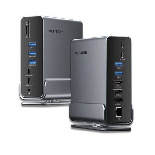 Vention USB-C to DP HDMI x 2 USB 3.2 Gen 2 Type-C USB 3.2 Gen 2 Type-A x 2 USB 3.2 Gen 1 Type-C USB 3.0 USB 2.0 x 2 RJ45 SD TF 3.5mm TRRS PD MST Docking Station