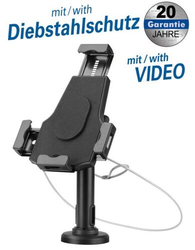 Transmedia 2-IN-1 Tablet Holder - For most 7,9 - 10,5 (20 - 26,7 cm) tablets, with anti-theft protection, for POS cash register systems, for wall mounting or as desk stand Swivel: 360 Tilt: - 70 Fixing to the table by screws