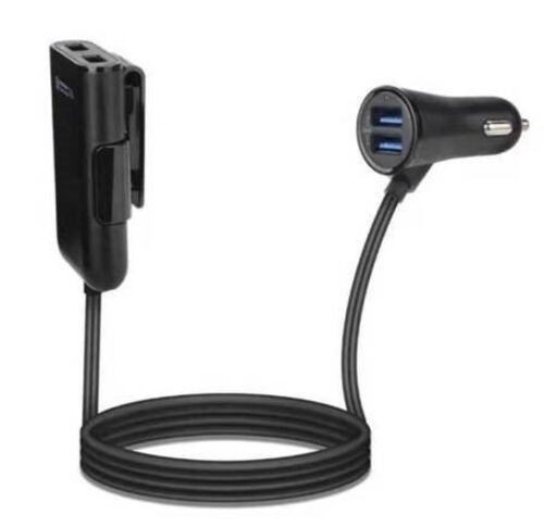 Gembird 4-port front and back seat car charger - 4-port USB car charger: 2 ports for the front and 2 ports for backseat passengers Intelligent chipset for over-current and short circuit protection Multi-charging: charge up to 4 devices simultaneously (max 2.4A per port) Integrated 1.8 m cable for backseat charging Power capacity: max. 4.8A - 24W (per group port: 2.4A 12W)